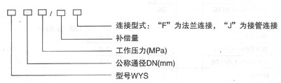表示:工作压力为0.6MPa,WYS代表无约束波纹补偿器,通径DN=300mm,12代表波数,F为法兰连接。