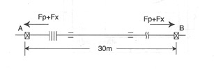 解:(1)热变形计算 △L=α·△T·L=0.0133×[350-(-10)] ×30=143.6mm (2)根据使用条件和热变形计算数据,查样要可选用0.6TWY500×8F,N=3000u次。 Xo=192mm,Kx=272N/mm(不作预变形) (3)A,B管架受轴向力:内压推力:Fp=100·P·A=100×0.6×2445=146700(N) 轴向弹力:Fx=Kx·X=272×143.6=39059.2(N) F=Fp+Fx=146700+39059.2=185759(N)